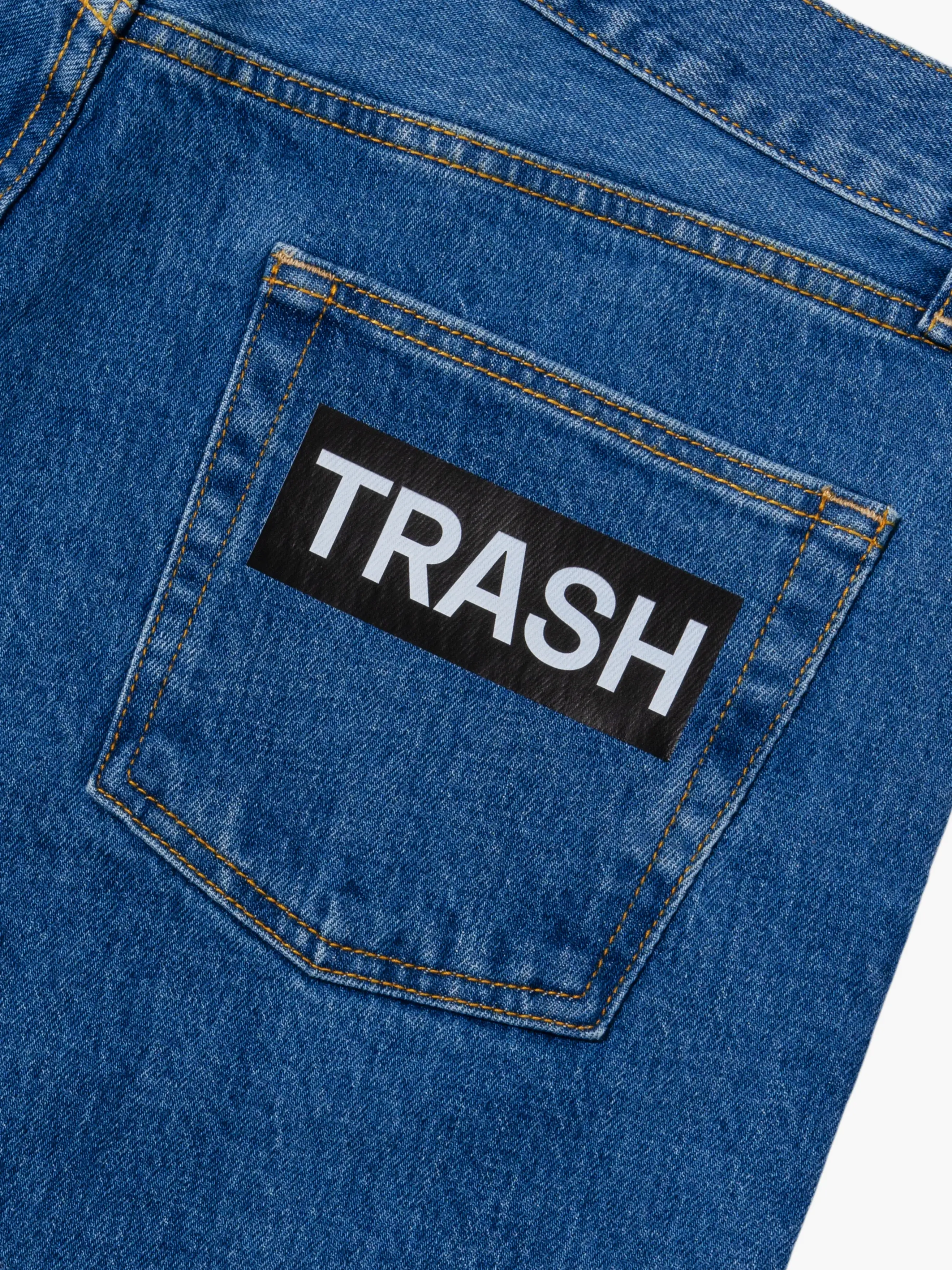 Old school aesthetics, detailed with the iconic logos on the back pockets.