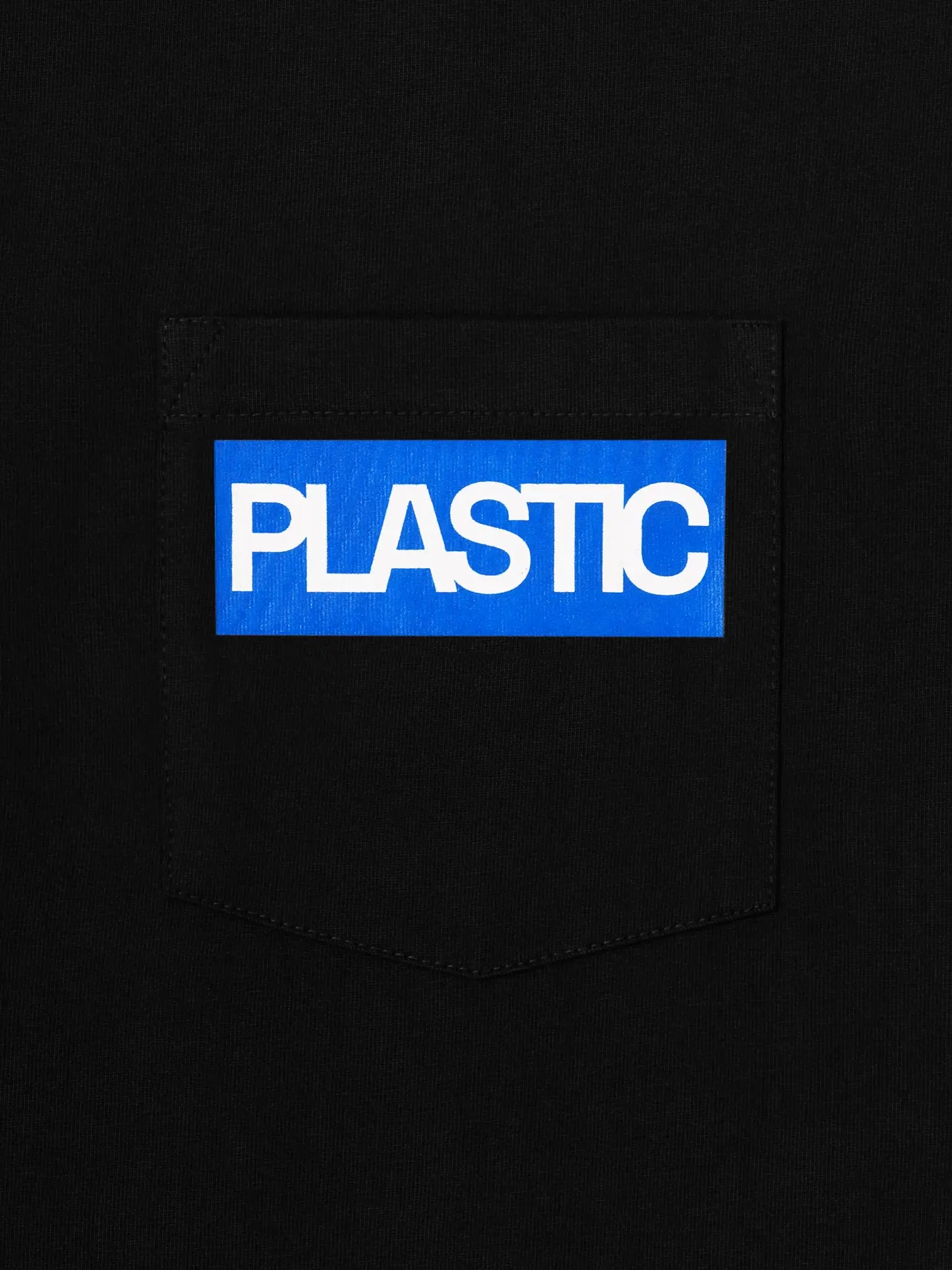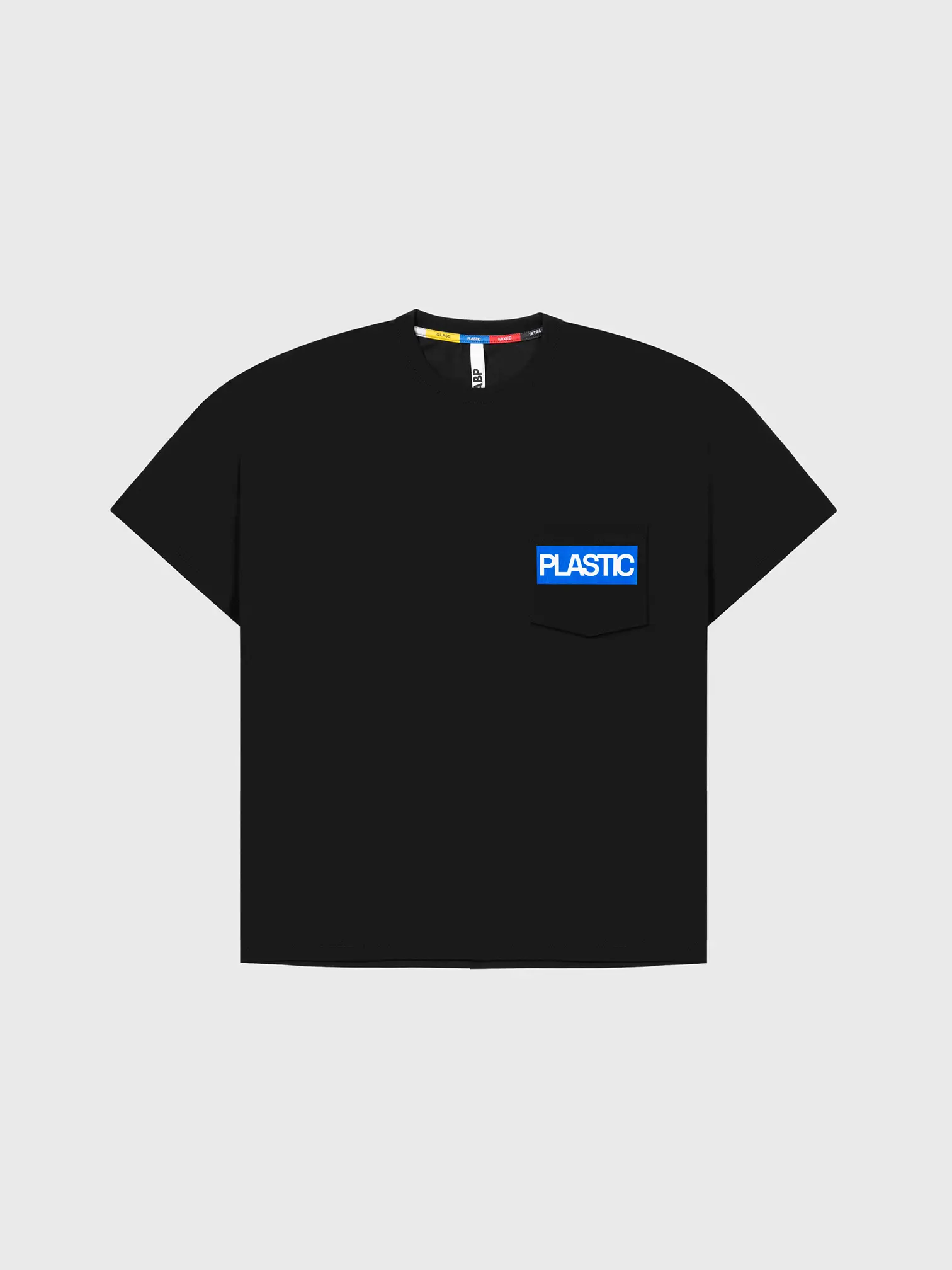 Oversized minimalist t-shirt in black and white with signs on the chest pocket.