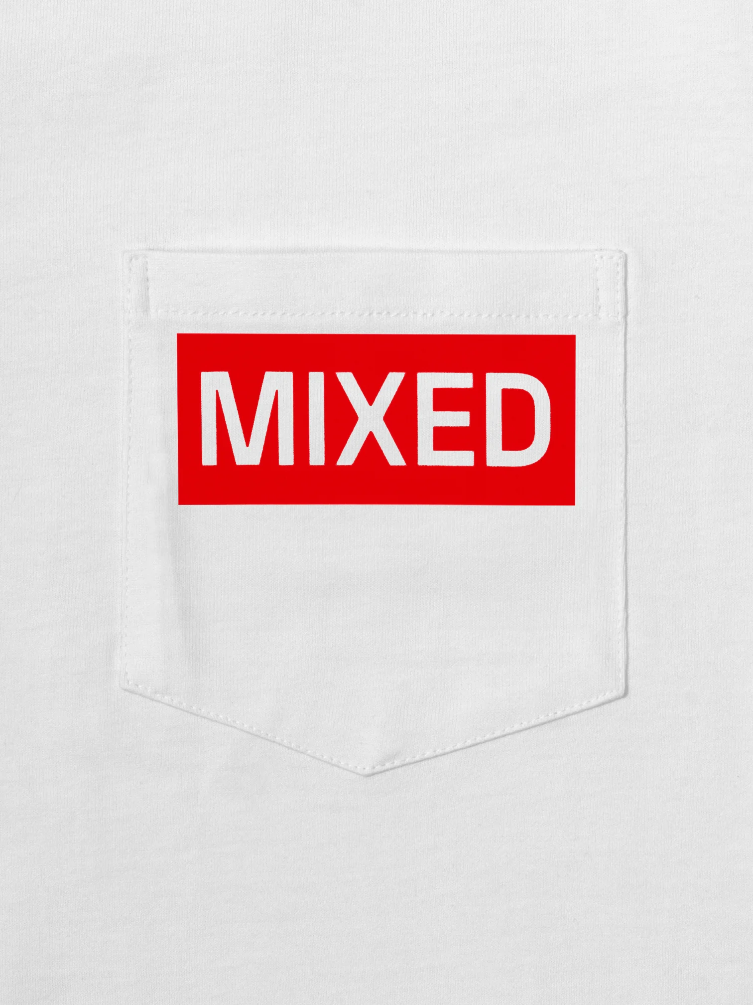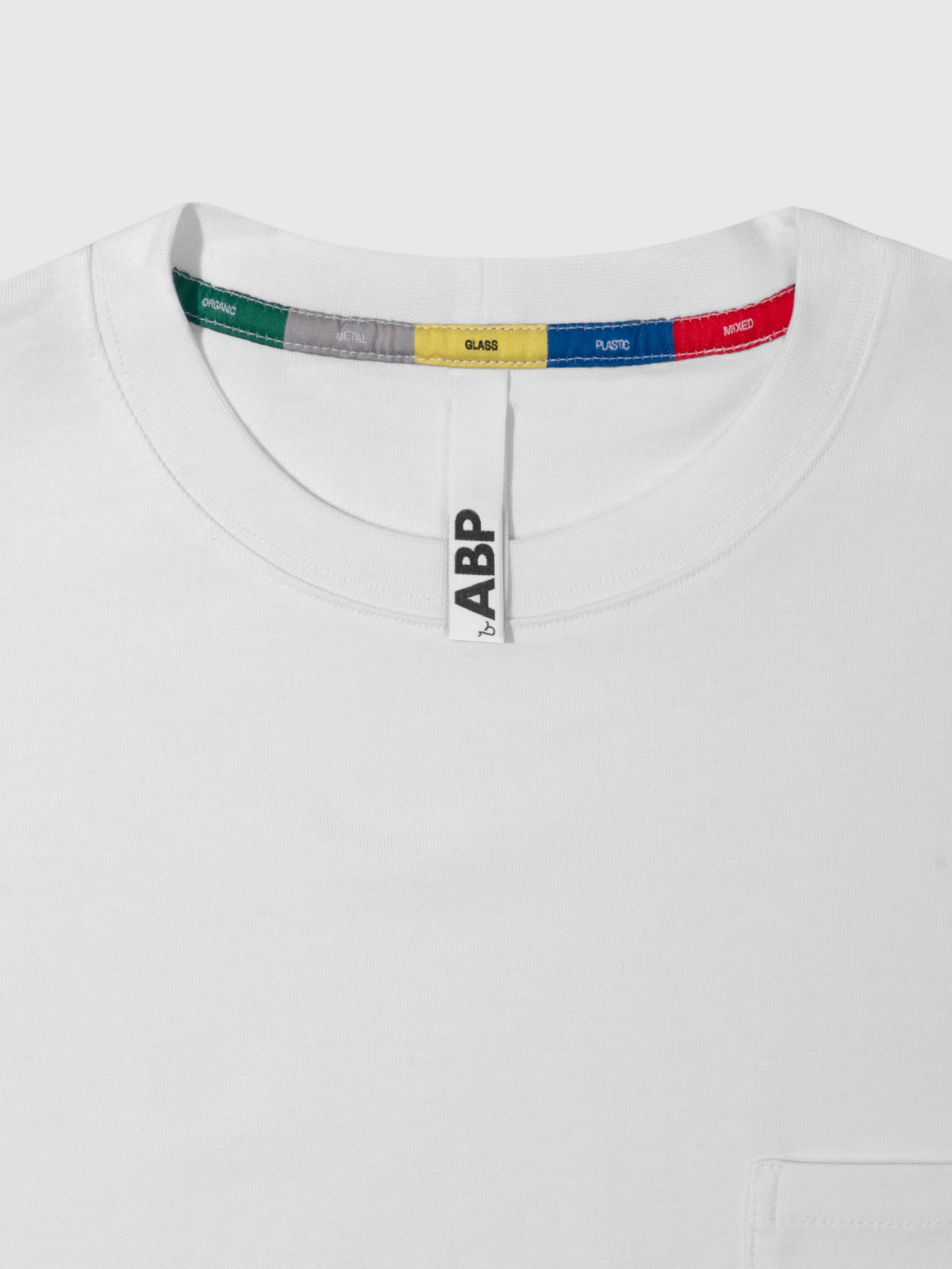 Oversized minimalist t-shirt in black and white with signs on the chest pocket.
